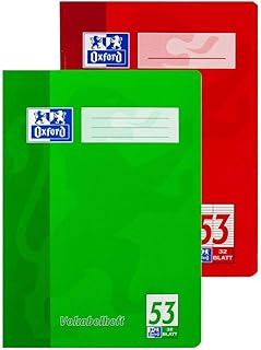 Oxford 100050336 Vokabelheft Schule 10er Pack im Format A4 mit 2 Spalten 32 Blatt sortiert rot und grün & Hefthülle A4, transparent, 25er Pack