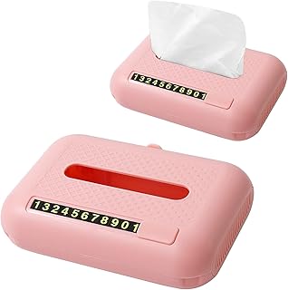YASUOA Auto Taschentuchhalter, 1 Stück Sonnenblende Serviettenhalter, Multifunktionale ABS Tissue Box mit Handyhalter, PU Leder Rücksitz Tissue Case Halter für Auto, Fahrzeug (Pink)