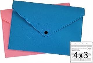 Filz-ähnliche Wollmappen-Umschlag für A4-Papiere, iPad- oder Tablett-Tasche, für Büro und Schule. (Blau und Pink) mit einem Stück 10,2 x 7,6 cm CDC Impfkartenschutz (wasserdicht)