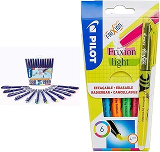 PILOT FriXion Fineliner, radierbar, 12er Set & PILOT FriXion Light, Radierbarer Textmarker, 6er Set (Neonpink, Neongelb, Violett, Blau, Orange, Grün)