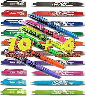 Pilot FriXion Maxi 16er Box 6 Light radierbare Textmarker mit den Farben Pink, Orange, Gelb, Orange, Blau und Violett und Pilot Tintenroller Frixion (radierbar) Set BL-FR7 im prakischen Geschenketui - Alle 10 verschiedenen Farben sortiert incl. der neuen Farben, Strichstärke 0,4 mm