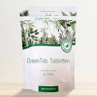 VivaNutria Green Trio Presslinge 1000g | aus kontrolliertem Anbau I 4000 Tabletten aus Spirulina Chlorella & Gerstengras ohne Zusätze I schonend verarbeitet und Rohkostqualität I vegan