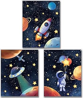 MWOOT 3 Stück Kinderzimmer Deko Poster, 30X40CM Wanddeko Bilder Groß, Weltraum Wandbilder für Babyzimmer Dekoration, Junge Schlafzimmer Leinwand Druckbilder ohne Rahmen, Zimmer Deko Zubehör - B Motiv