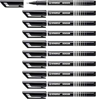 Fineliner mit gefederter Spitze - STABILO SENSOR F - fein - 8er Pack - mit 8 verschiedenen Farben Faber-Castell 155499 - Fineliner Broadpen 1554, 0,8 mm, schwarz Winsor & Newton7001031 Fineliner, Pigment Liner für exakte Linien und Outlines, hohe Qualität, Pigmenttinte, dokumentenecht, lichtbeständig, im Blister - Linenbreite 0,05mm in Schwarz Der STABILO SENSOR hat eine Spitze mit einzigartiger Federung, um sich jedem Schreibdruck optimal anzupassen. So bleibt die Hand auch nach langanhaltender Beanspruchung immer entspannt. Die Mikro-Federung verhindert, dass die Spitze verbiegt oder im schlimmsten Fall sogar bricht und macht den Stift so zu einem langlebigen Begleiter. Die metallgefasste Spitze sorgt für hohe Qualität und ermöglicht exzellenten Schreibkomfort. Wegen der wischfesten Tinte (blau und schwarz) ist er außerdem