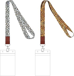2 Sets Leoparden Muster Lanyard mit Kartenhalter, Schlüsselbund Lanyard Hals Rriemen ID Abzeichen Lanyard Schlüsselhalter Vertikal Durchsichtige ID Kartenhalter für Kinder Frauen
