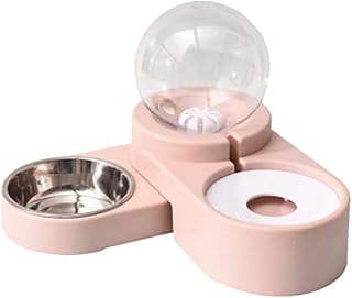 ACWERT Futternapf, automatischer Wasserspender und Futternapf für Haustier Katze und Hund, Doppelnapf mit nicht nassem Mund, blau/rosa, automatischer Futternapf aus Edelstahl und Wassernapf