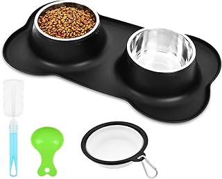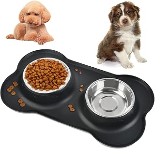 Hundenapf, Wasser und Futter Hundenapf, Hund Katze Futternapf, Doppelnapf, Edelstahl Hundenapf mit rutschfester Silikonmatte, Hund Wassernapf für Hunde, Katzen, Welpen und Haustiere (25 oz, schwarz)