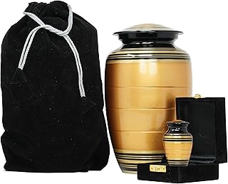 Bhartiya Handicrafts Cremation Urns for Human Ashes Pet Ashes Dog Ashes Cat Ashes Adult for Funeral | Burial Decorative Urns with Velvet Bag 200 Cubic Inches, (XXL) (Yellow with Keepsake)
