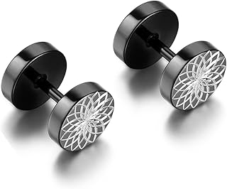 Damen Ohrringe Männer Ohrstecker, 8mm Edelstahl Ohrstecker Gestüt Stecker Ohrringe Schwarz Silber Blütenblätter Blumen Muster Fake Plug Tunnel Ohrstecker Piercing