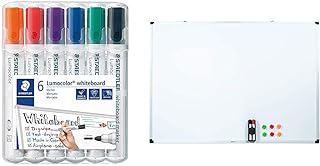 Staedtler Lumocolor 351 WP6 Whiteboard-Marker, Rundspitze ca. 2 mm Linienbreite, Set mit 6 Farben, hohe Qualität & Amazon Basics Magnetisches Whiteboard mit Stiftablage und Aluminiumleisten