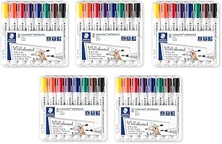 Staedtler Lumocolor 351 WP8 Whiteboard-Marker (Rundspitze ca. 2 mm Linienbreite, Set mit 8 Farben (1 Pack, 5 Packungen)