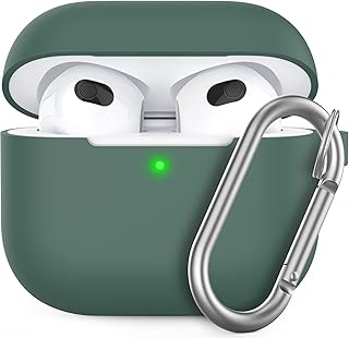 AHASTYLE AirPods 3 Hülle Silikon Schutzhülle und Haut Case für AirPods 3 [Front-LED Sichtbar] [Kabelloses Laden] Kompatibel mit AirPods 3 2021 (Mit Karabiner, Kieferngrün)