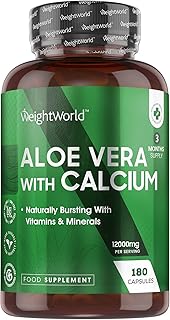 Aloe Vera Kapseln mit Kalzium - 12000mg Aloe Vera Pflanze Extrakt und 150mg Kalzium je Tagesdosis - 180 Tabletten - Geprüfte Zutaten - Aloe Barbadensis - Calcium für Verdauung & Stoffwechsel