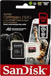 SanDisk Extreme PRO 256 GB microSDXC Speicherkarte + SD-Adapter mit A2-App-Performance bis zu 170MB/Sek., Class 10, U3, V30