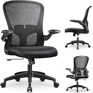 Homall Schreibtischstuhl Bürostuhl mit Klappbaren Armlehnen Mesh-Bürostuhl Ergonomisch Drehstuhl Chefsessel Atmungsaktiver Kompaktstuhl, Taillenstütze, Netz Stuhl bis 136kg/299LB Belastbar (schwarz)