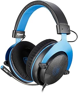 Wasart Gaming Headset, Headset PC mit Mikrofon, Gaming Kopfhörer für PS4, PS5, Xbox One, Switch, 3.5mm Headset für Laptop Mac/Tablet/Smartphone mit LED Licht Stereo Surround Noise Cancelling, Blau
