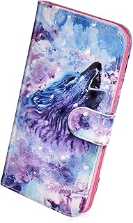 Herbests Kompatibel mit Samsung Galaxy A10 Handyhülle Hülle Flip Case Bunt Glitzer Muster Leder Schutzhülle Klappbar Bookstyle Lederhülle Ledertasche mit Magnet Kartenfach,Wolf
