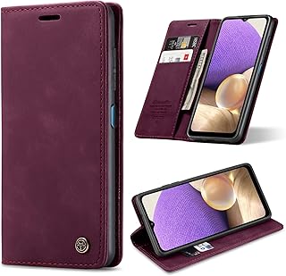 ivencase Handyhülle Kompatibel mit Samsung Galaxy A32 5G Hülle, mit Kartenfach Geld Slot Ständer Flip Schutzhülle Kompatibel mit Samsung A32 5G Wallet Case PU Leder - Weinrot